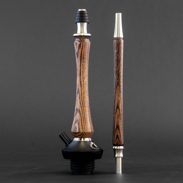 【Nube Unique Brown Zebrano ヌベユニーク ブラウン ゼブラーノ】 ブランド名:Nube Unique モデル名:ZEBRANO(ゼブラノ) カラー:BROWN(ブラウン) 製造国:ロシア 【付属品】 ・シーシャ本体 ・シリコンホース ・ホースハンドル(マウスピース) ・チャコールトレイ ・ベース瓶 【商品詳細】 素材:本体/AISI-321ステンレス鋼 シャフトカバー:ゼブラノ材(防水加工) ベース瓶:ガラス製(口径4.5㎝※ロシアンスタンダード) サイズ:ダウンステムからボウルまでの高さ 51.5cm ベースからボウルまでの高さ 30cm マウスピースの長さ 21 cm ダウンステムの長さ 21.5 cm *クールダウンシステム搭載(特許取得済み) マウスピースから息を吹き込むことによって、ボウルの温度を調整することが可能です。 温度の上がり過ぎをマウスピースに息を吹き込むだけで安定的な温度管理ができます。